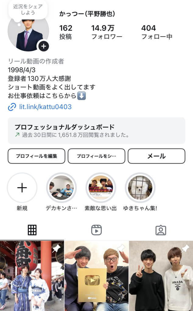 日々のストーリーや、クリエイター友達との写真、リール動画も投稿しています。