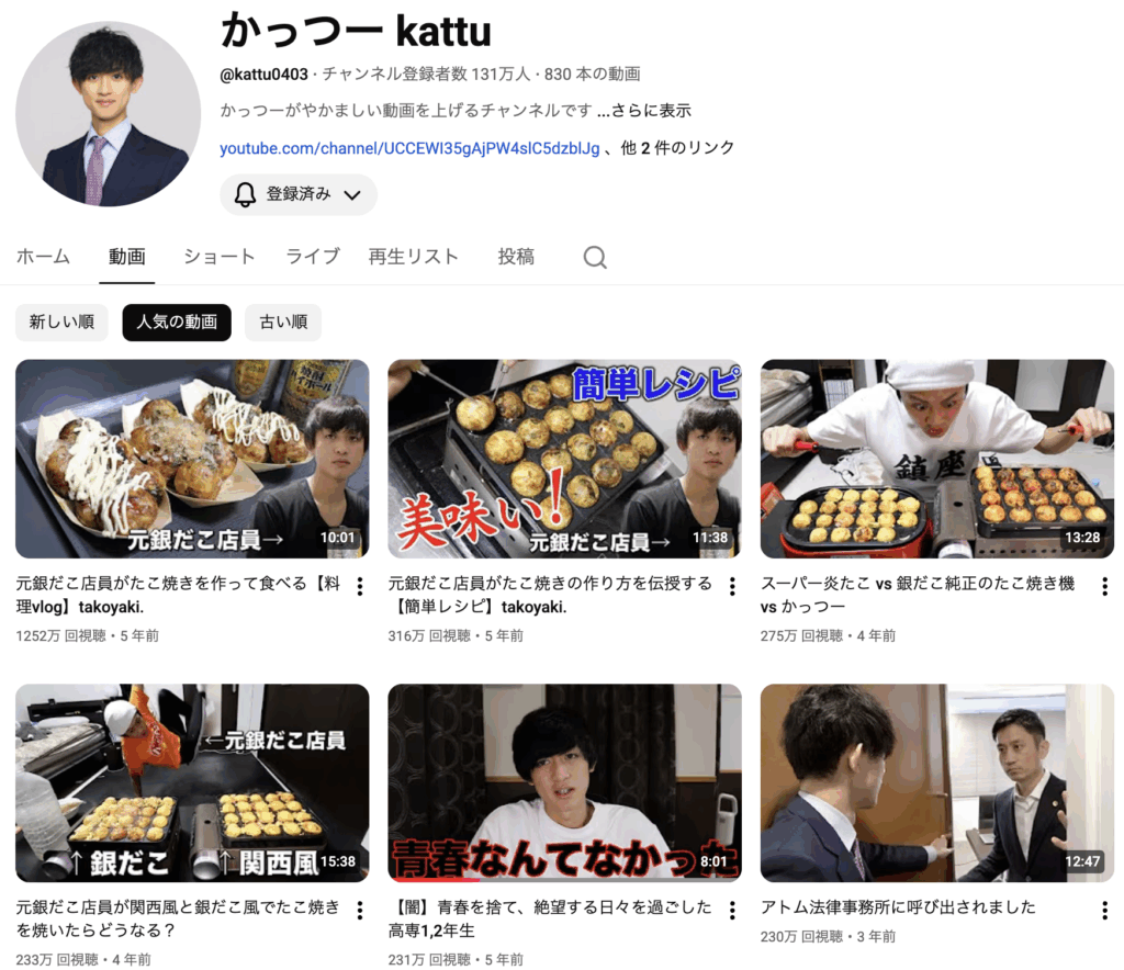 YouTube登録者130万人の「かっつー」として活動しながら、
